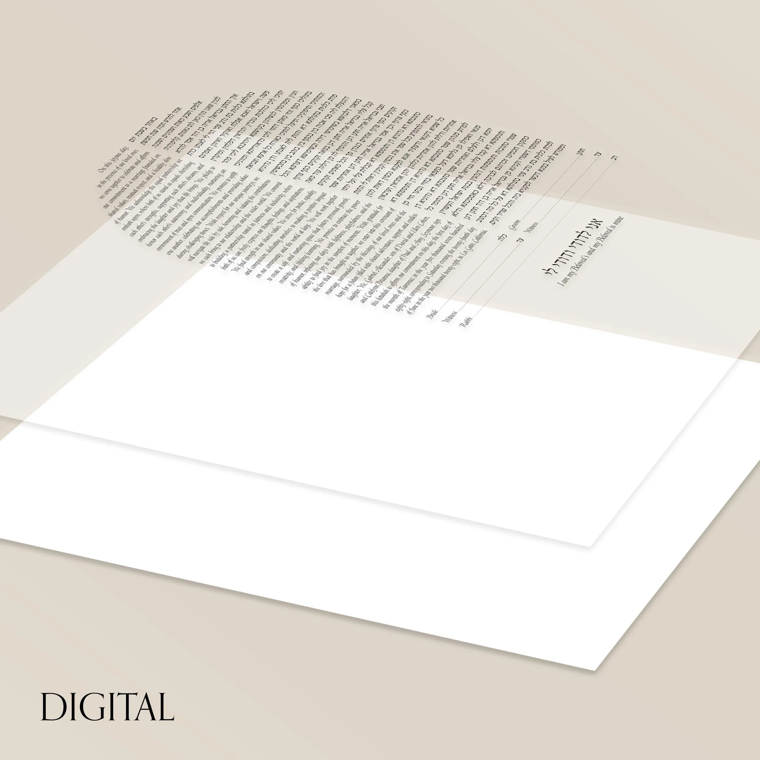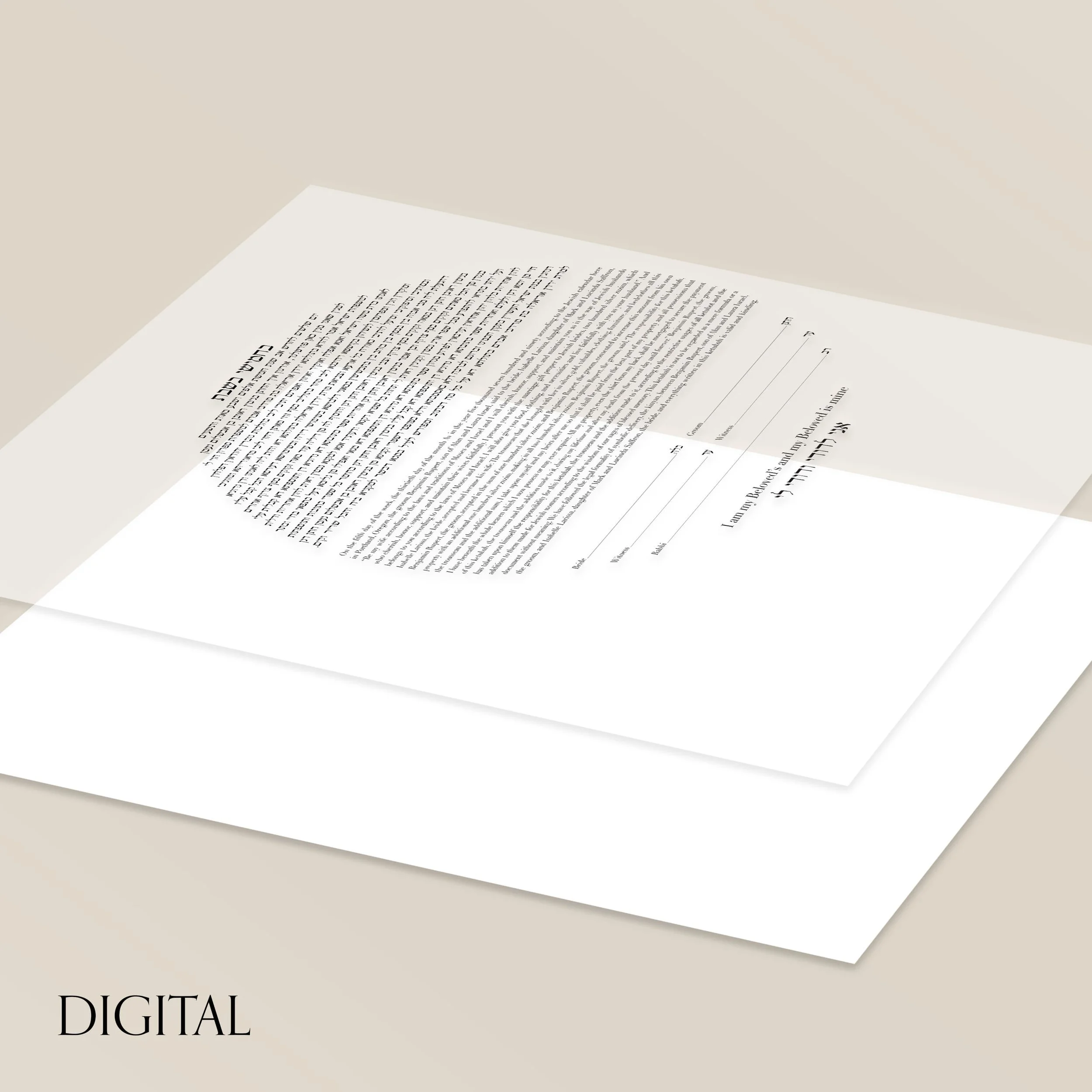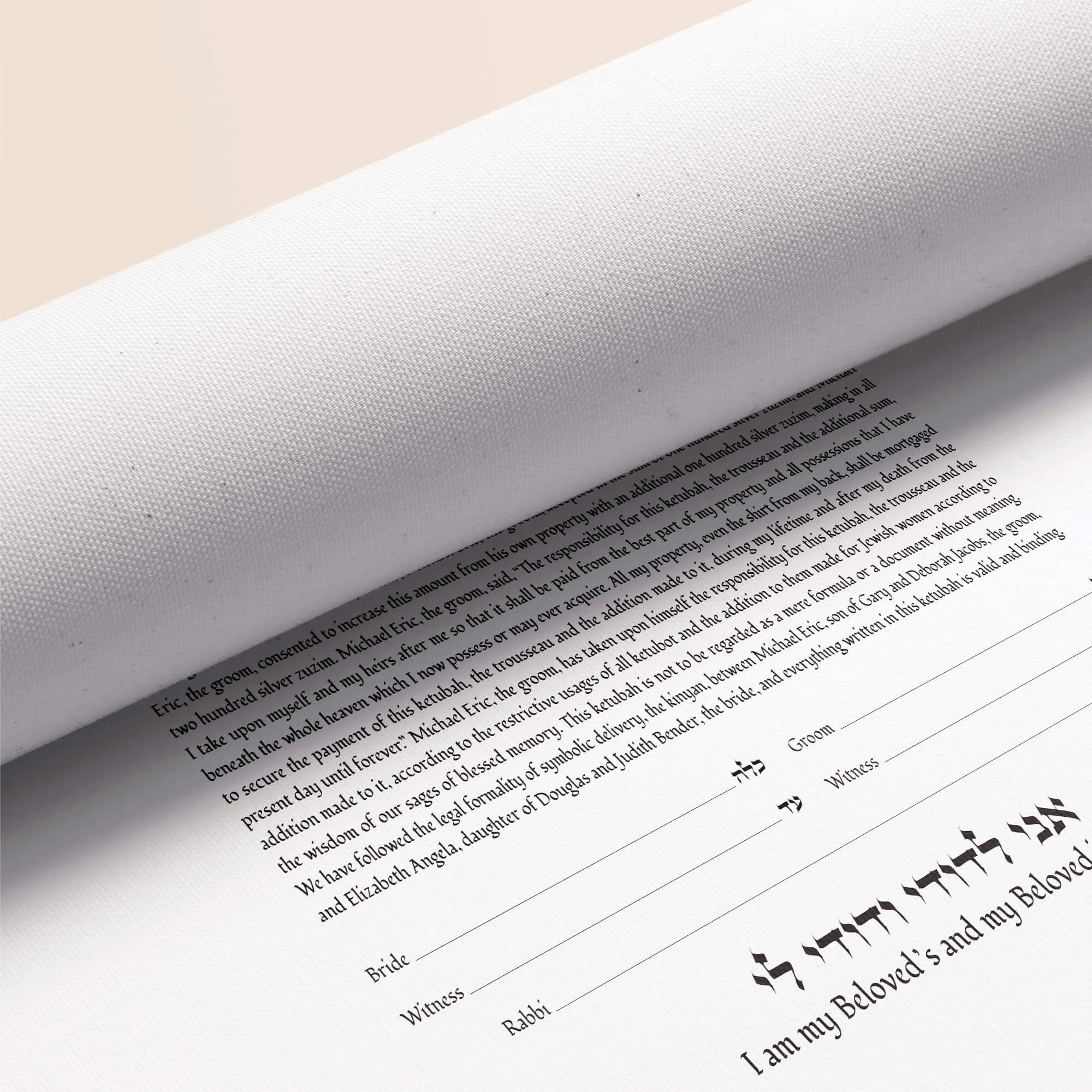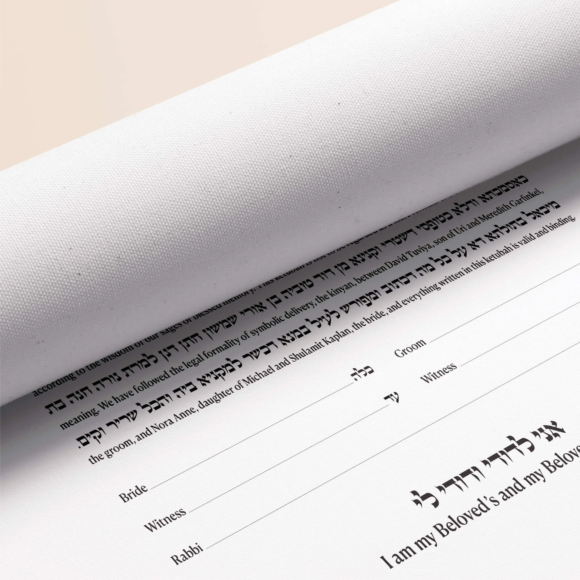 You provide your artwork as a high-resolution digital file or a 300 dpi scan of physical art. I integrate your art with the ketubah text (adjusting layout for custom shapes as needed), format everything, and prepare it for printing.