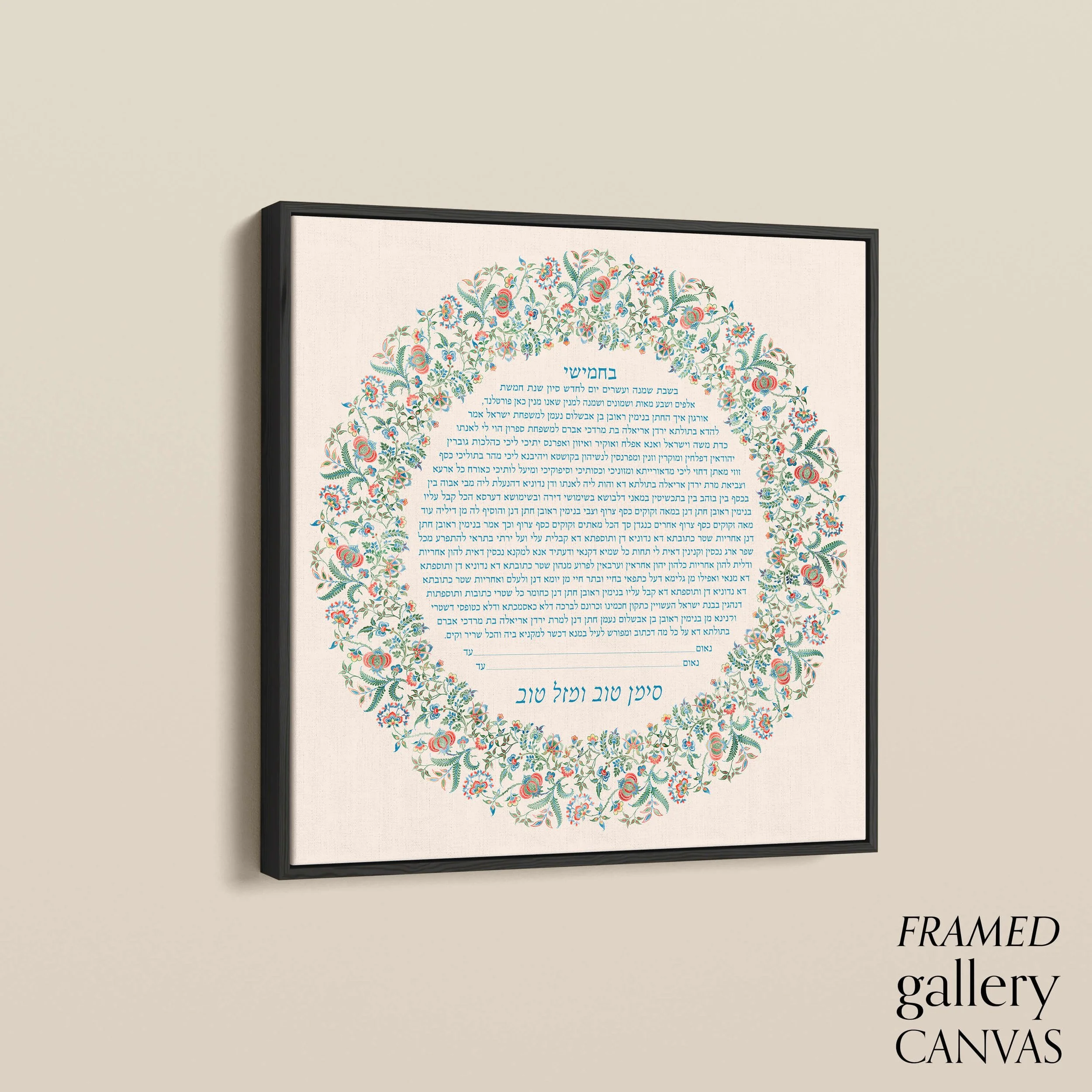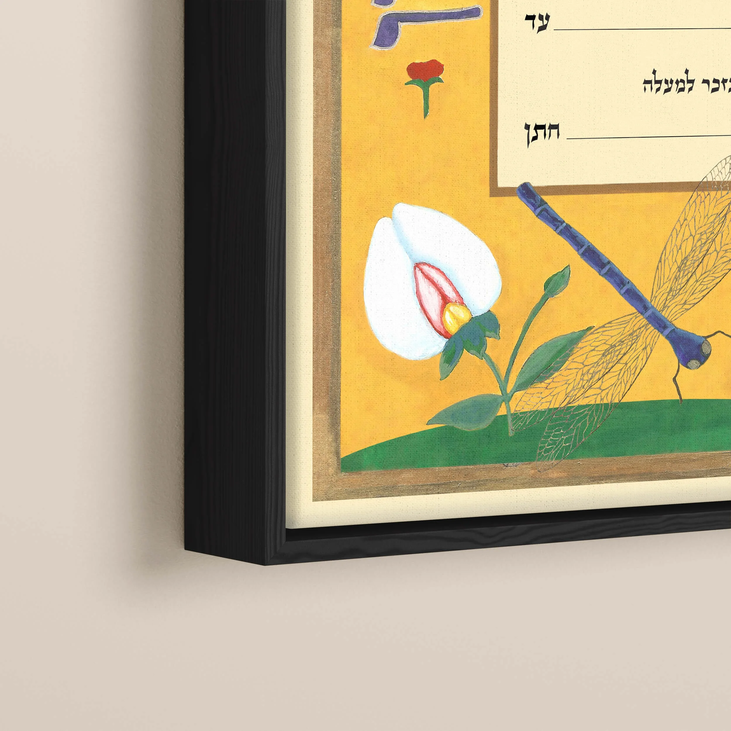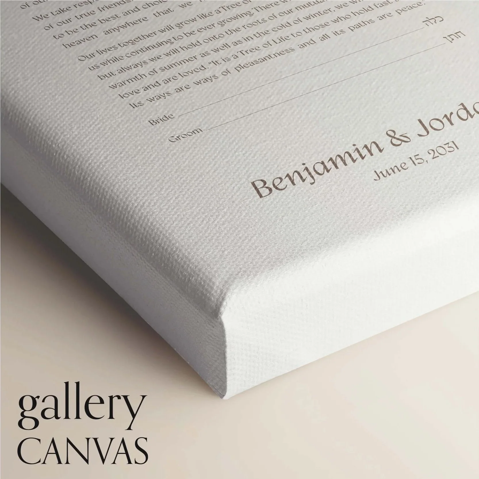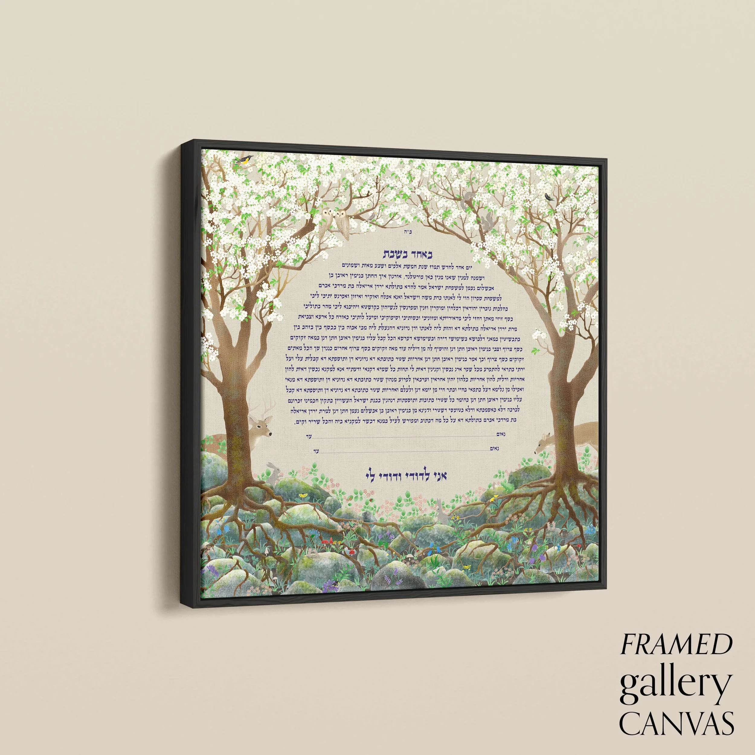 As a standard part of this service, texts can be adjusted, layouts tailored, and details confirmed so the ketubah reflects your rabbi’s judgment and ensures a good future for the couple. The artist will coordinate directly with your rabbi and make any changes, if needed. The result is a ketubah that is personal, halachically sound, and crafted as an heirloom for generations to come.