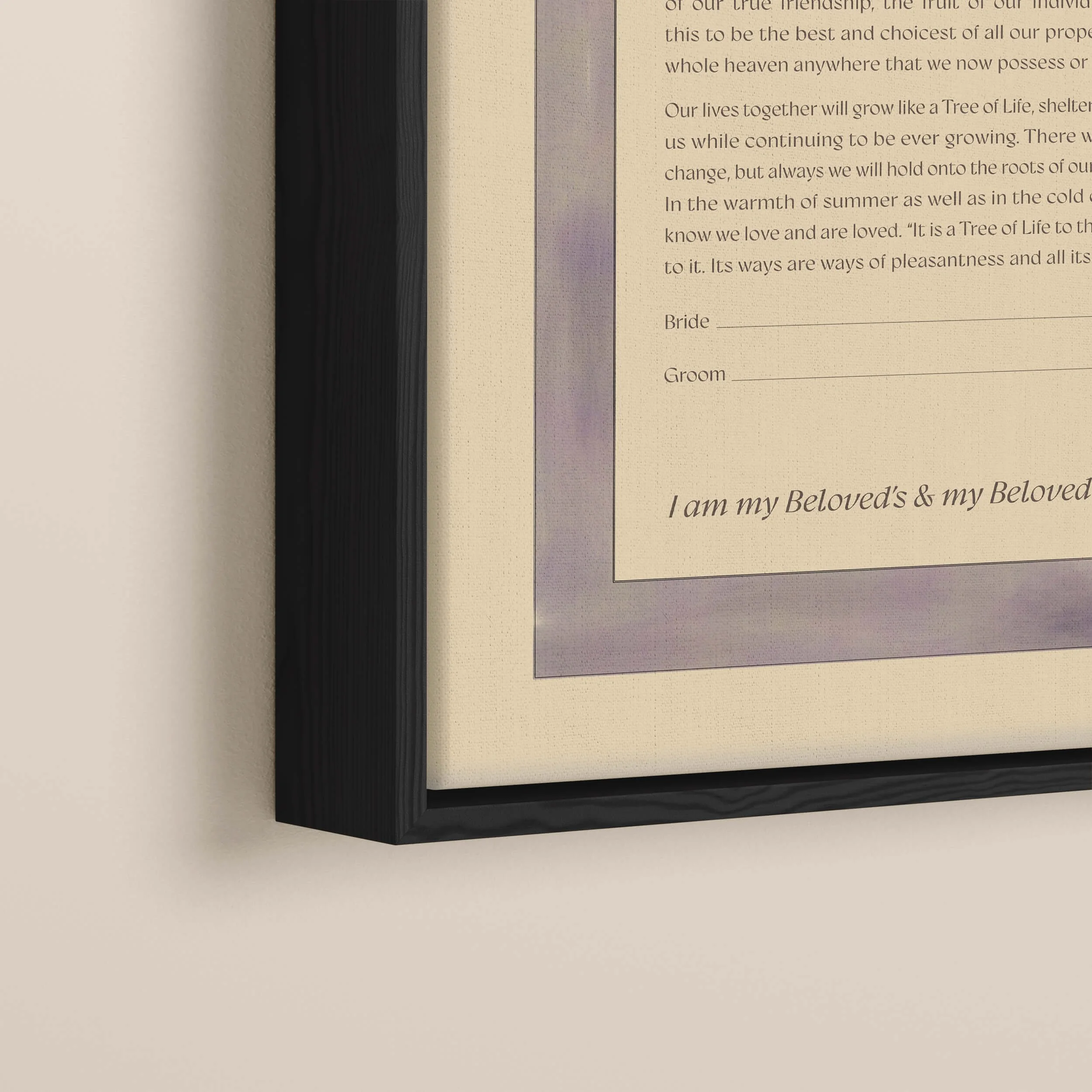 Each ketubah is prepared with efficiency and care through a streamlined easy-to-follow process, so you receive your document on time, knowing what you’re getting, without sacrificing quality. Families rely on Ketubah Arts because they can trust that everything will be ready when it matters most. Average time from ordering to receiving your ketubah is about 1 month, but may be ready more quickly.
